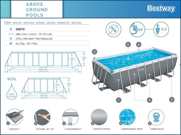 בריכת BESTWAY מלבנית אולטרה 122*244*488 סדרת Steel Pro Max דגם 56670-1