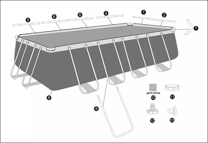 *) מצורפת ערכת תיקון חורים / חתכים לבריכה במקרה הצורך.