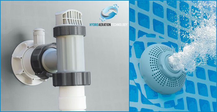 *) קיים שסתום ניקוז, המתחבר לצינור גינה ומאפשר ריקון מהיר וקל של המים הרחק מהבריכה.