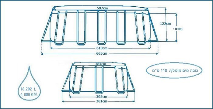 נפח מים: 4,809 גלון/ 18,202 ליטר (90%)