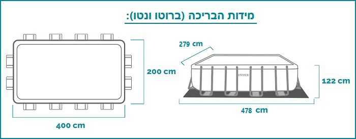 בריכת INTEX מלבנית אולטרה 122*200*400 סדרת PRISM FRAME דגם 26790-1