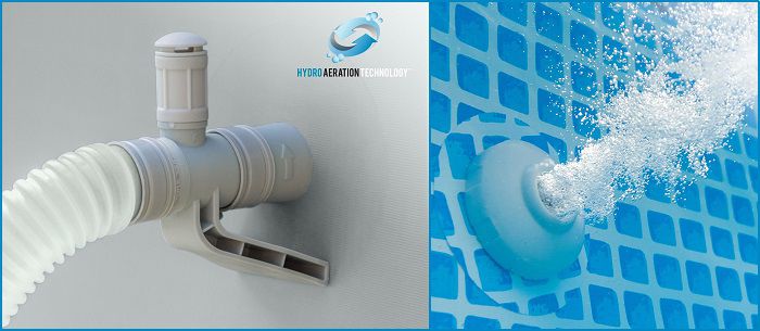 *) קיים שסתום ניקוז, המתחבר לצינור גינה ומאפשר ריקון מהיר וקל של המים הרחק מהבריכה.