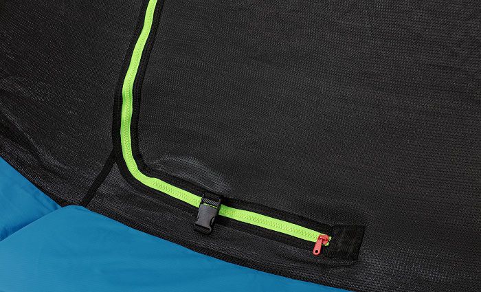 *) כניסה לטרמפולינה בעזרת רוכסן בצורת L עם סגירת אבזמים.