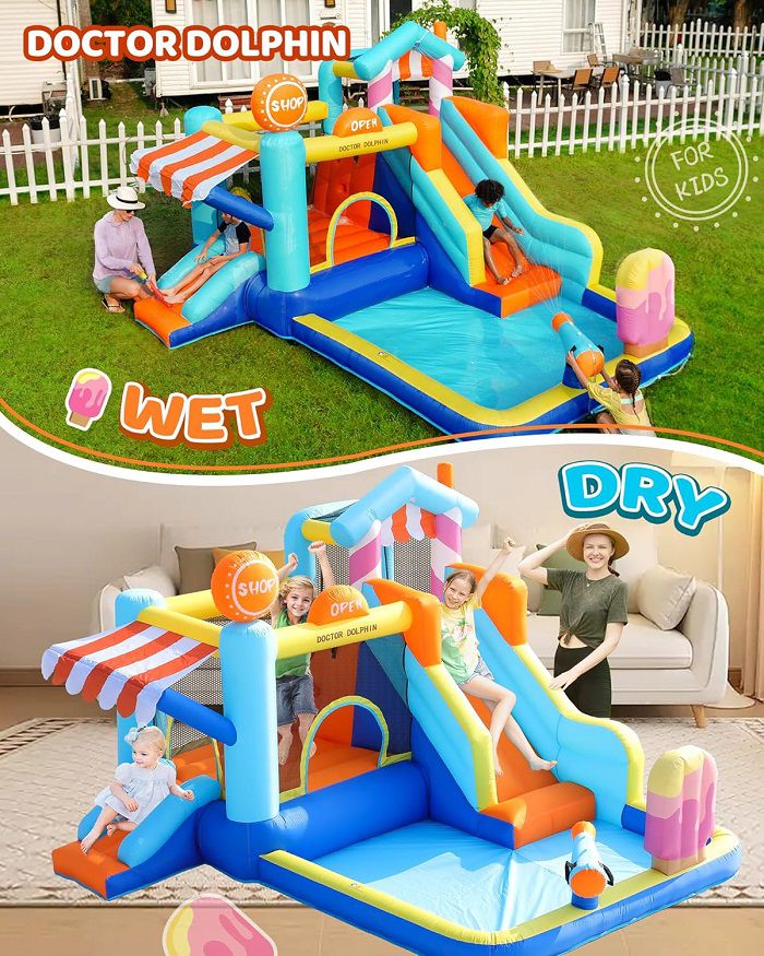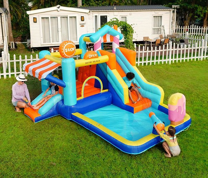 מתנפח מים הכולל מתקן קפיצות+מגלשה גבוהה+ מגלשה נמוכה+קיר טיפוס+תותח מים+בריכת שיכשוך, דגם 73072T דוקטור דולפין DOCTOR DOLPHIN