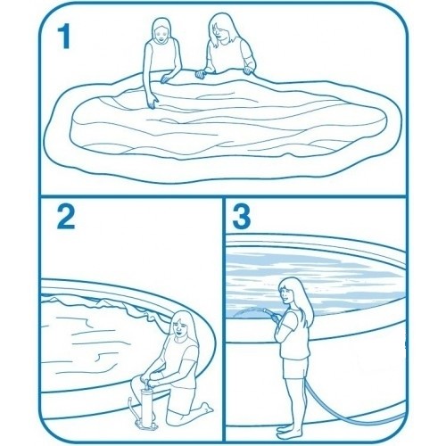 *) יש להניח את הבריכה על קרקע ישרה, לנפח את השפה העליונה והבריכה תתרומם במהלך מילוי המים.