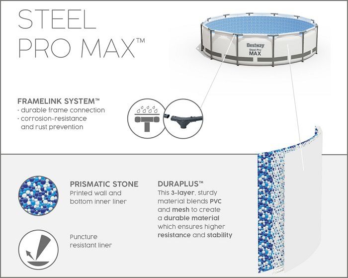 ערכת הכל כלול קלאסיק בריכת BESTWAY אולטרה עגולה קוטר 488 עומק 122 Steel Pro MAX דגם 5612ZC