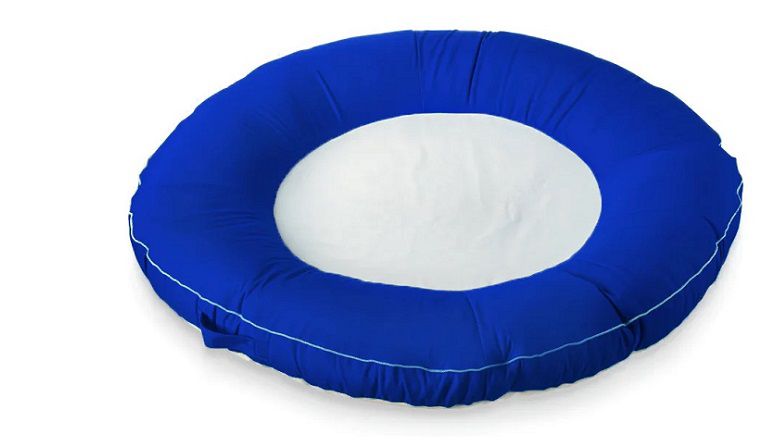 פוף אבוב יחיד איכותי צף בבריכה, עמיד לתנאי חוץ, מיוצר בישראל, דגם דונאט בגוון כחול