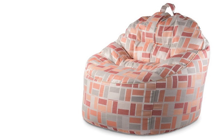 פוף/כורסה עגולה איכותית ועמידה לתנאי חוץ, מיוצרת בישראל, דגם טרנקילו עם הדפס מלבנים בגווני כתום/אפור