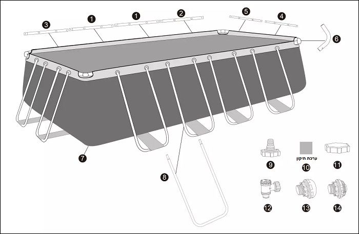 *) הבריכה קלה להרכבה ולפירוק (אין צורך בכלי עבודה).
