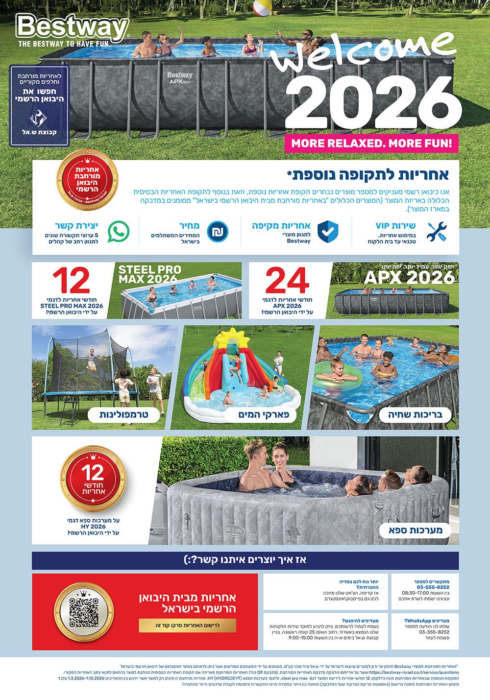 האחריות תינתן על ידי היבואן, טל: 03-5558252 , 03-5566363 או באתר www.bestway-israel.co.il