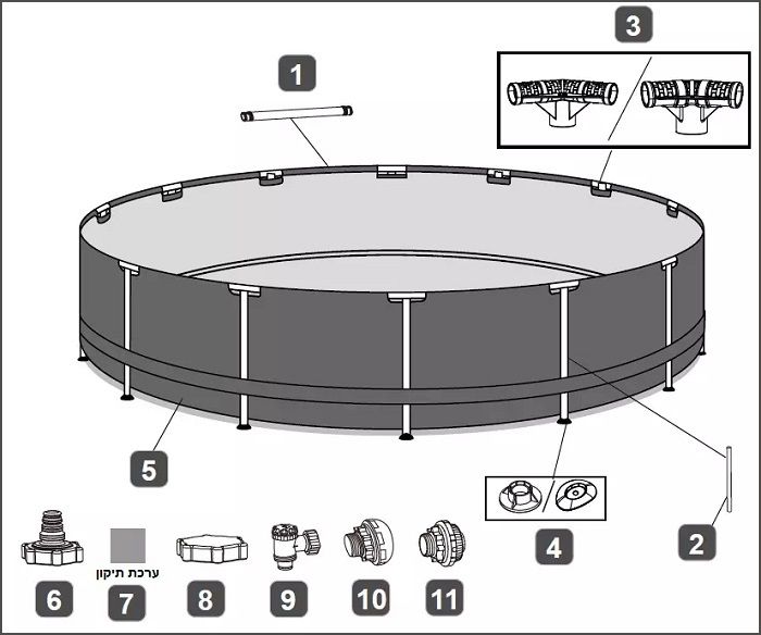 *) מצורפת מדבקת פאטץ לתיקון הבריכה במקרה הצורך.